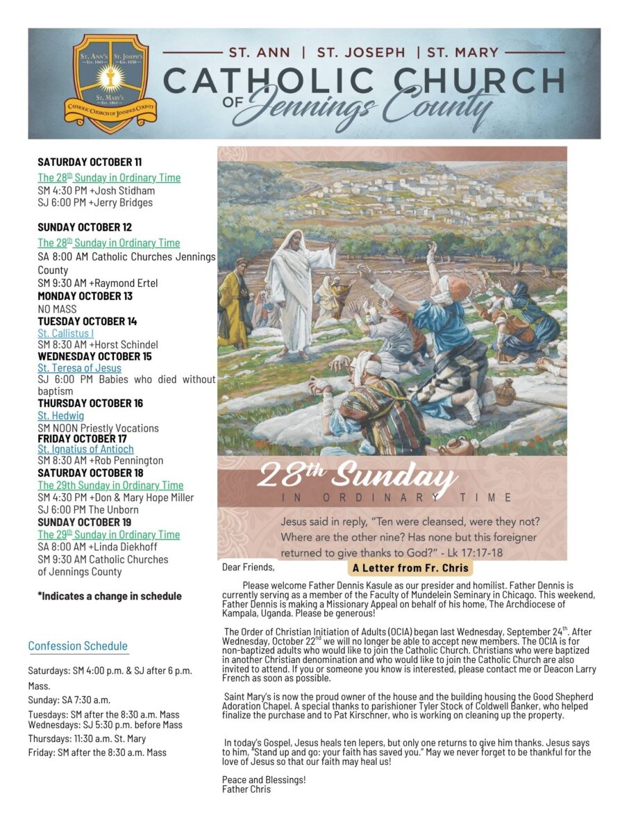 A Letter from Fr. Chris for the 28th Sunday in Ordinary Time