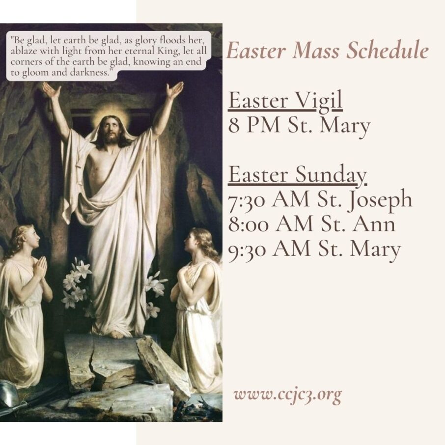 With the beginning of Advent, we will change some of our Mass Times at the parishes. ADVENT SCHEDULE Change in Mass Times are Beginning the First Sunday of Advent on November 29-30 Saturday Mass at St. Mary’s will begin at 4:00 p.m. instead of 4:30 p.m. Sunday, Mass at St. Mary’s will begin at 10:00 a.m. instead of 9:30 a.m. … Read More